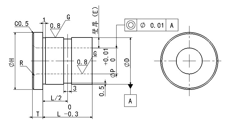 | 型式 | D | P 指定单位0.01mm | L 指定单位0.1mm | 壁厚(E) | R | H | T | ||
