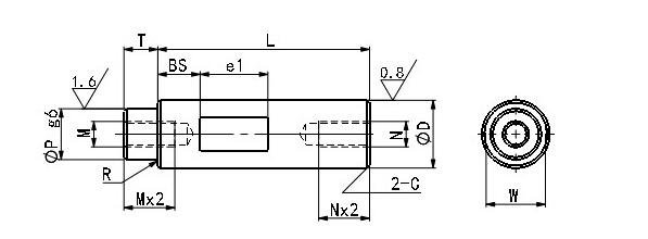 • 导向轴一端外螺纹带扳手槽型