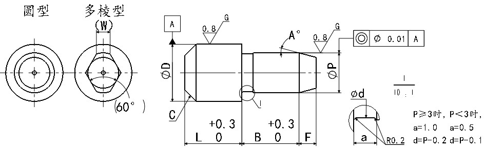 • 定位销小头锥角型内螺纹型圆型